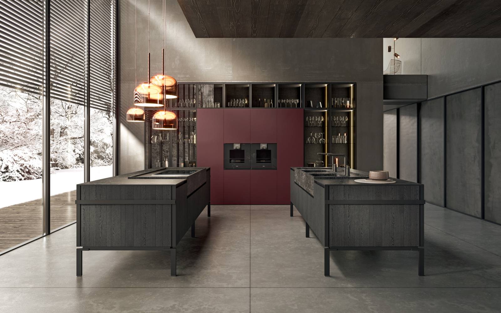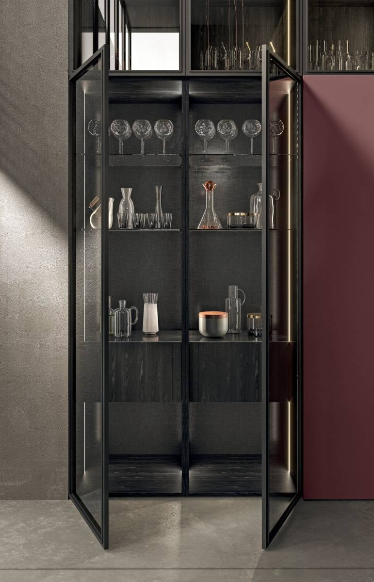 Façade réalisée avec un panneau en bois à faible émission de formaldéhyde. La finition Stratifié Fenix couvre la partie avant du panneau, la surface arrière est recouverte d’une feuille en stratifié HPL de la même couleur. Le stratifié en pierre couvre la porte des deux côtés. Chant ABS ton sur ton.